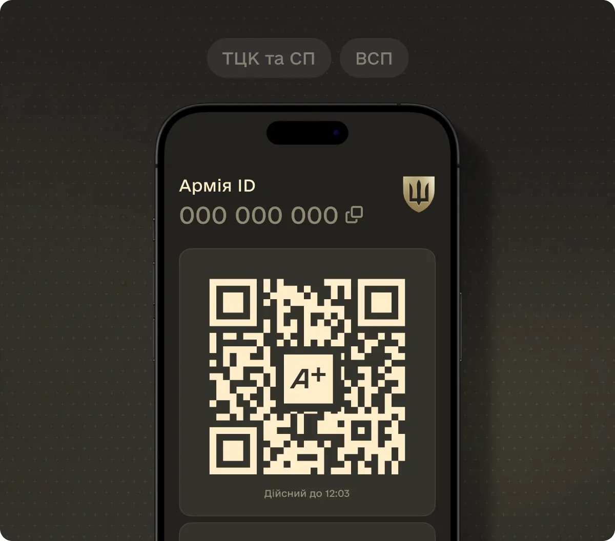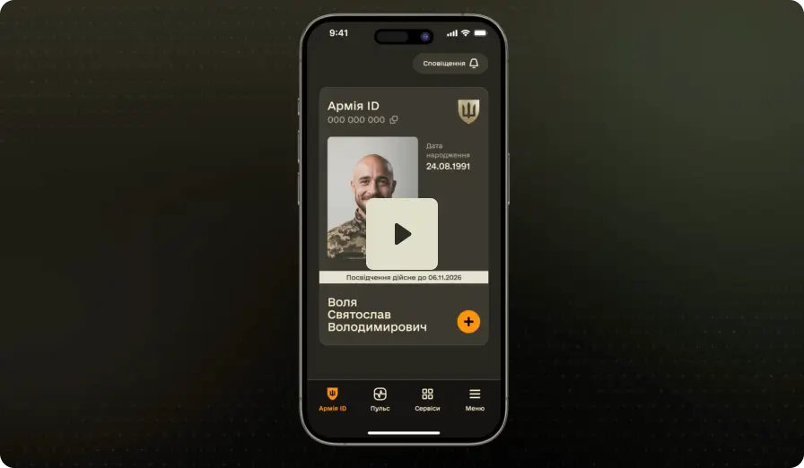 Армія ID — це посвідчення захисника(-ці) для підтвердження статусу військовослужбовця(-иці) у повсякденних ситуаціях. У ньому є фото та базова інформація, доступна за QR-кодом, а також унікальний ID-номер, потрібний для подання рапортів.